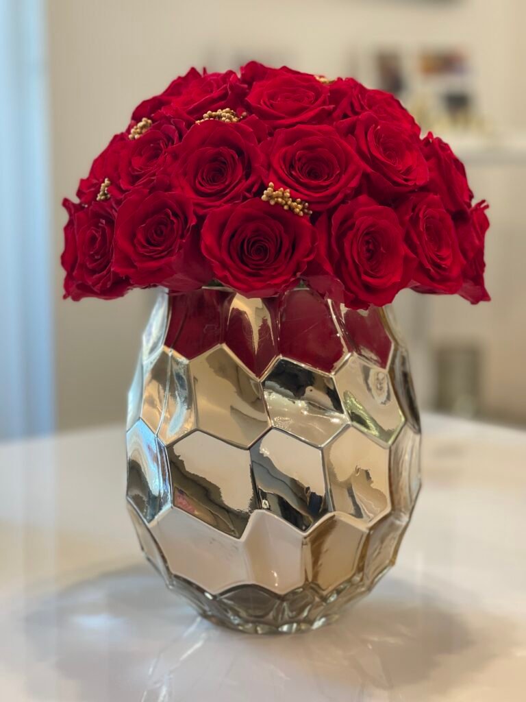 These are natural roses treated through a special process that allows them to retain their freshness and beauty without water or intensive care. Ideal for long-lasting and elegant gifts.